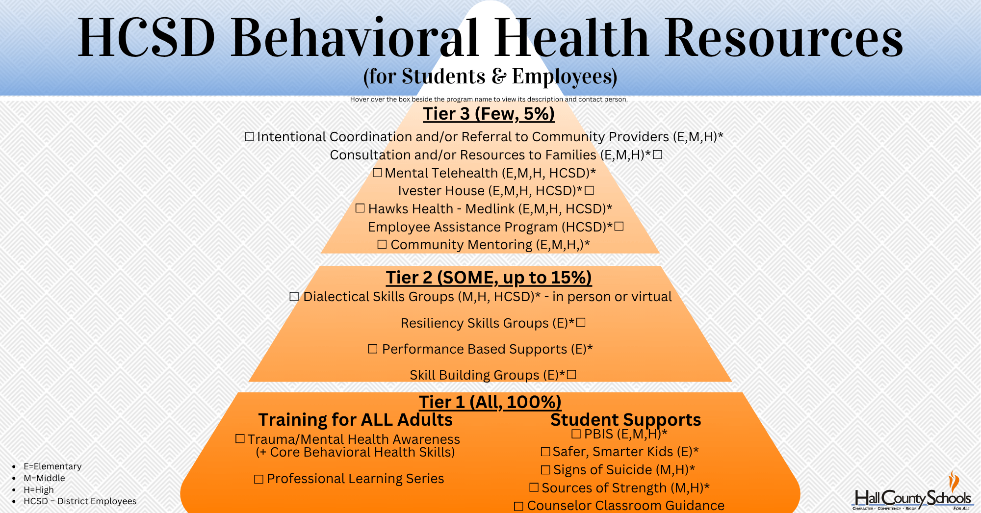 Students and staff can access tele-mental health services offered by many of the 22 MOUs serving Hall County Schools. These services provide convenient, confidential counseling and support through secure virtual platforms. This allows for flexible scheduling and expanded access to mental health care without leaving the school setting.