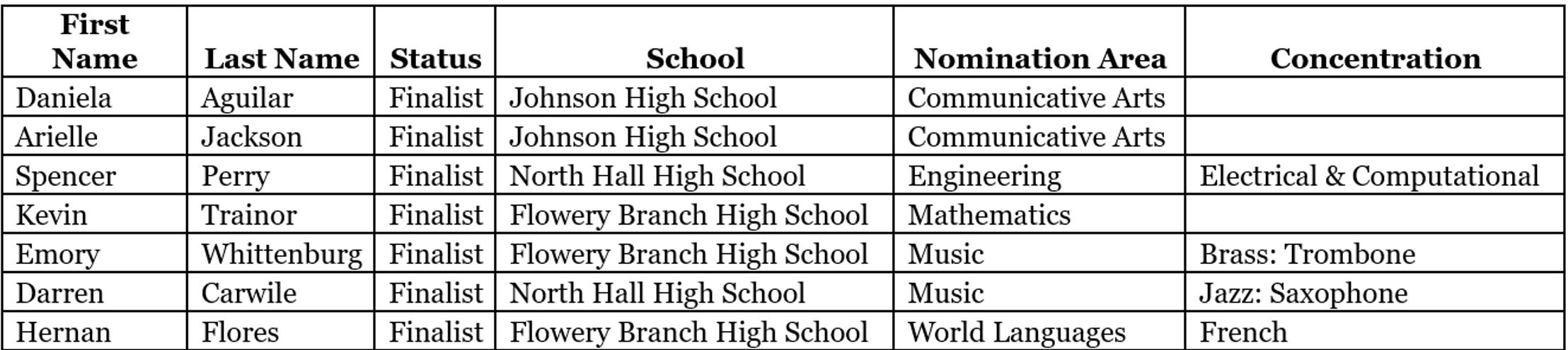 Hall County Schools congratulates our seven students who have been named as finalists for the Georgia Governor’s Honors Program for the summer of 2026!